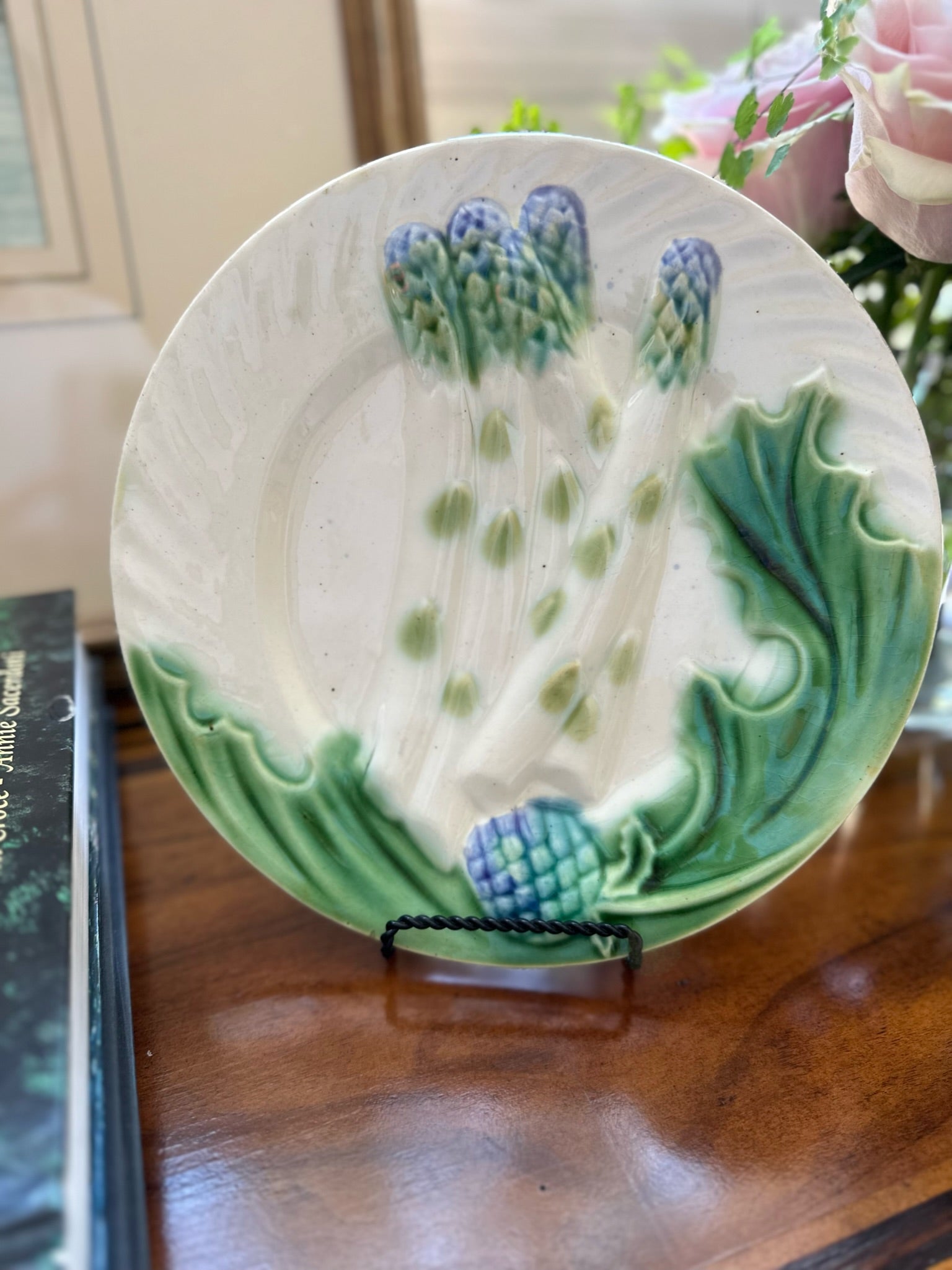 Antique French Asparagus Majolica Plates